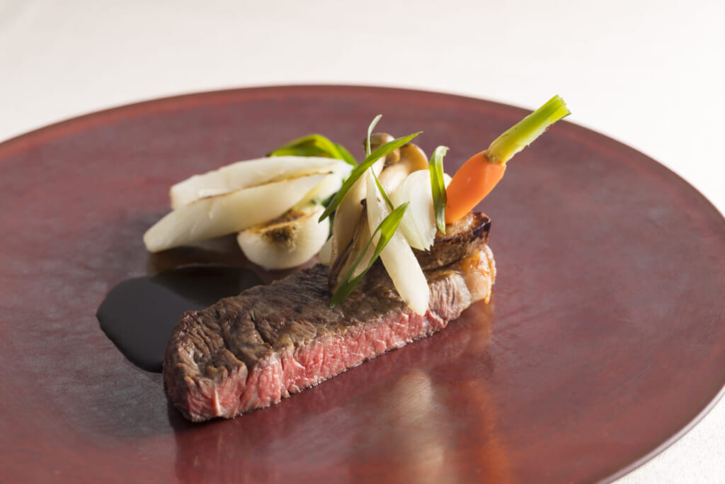 メインディッシュには、もろみ味噌の風味が香る千葉県産かずさ和牛のローストを。
