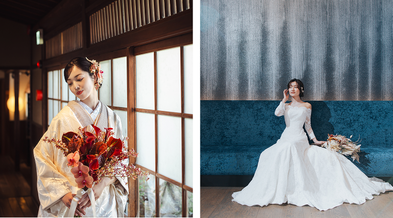イベント当日は、和装とウエディングドレスの両方をご用意。