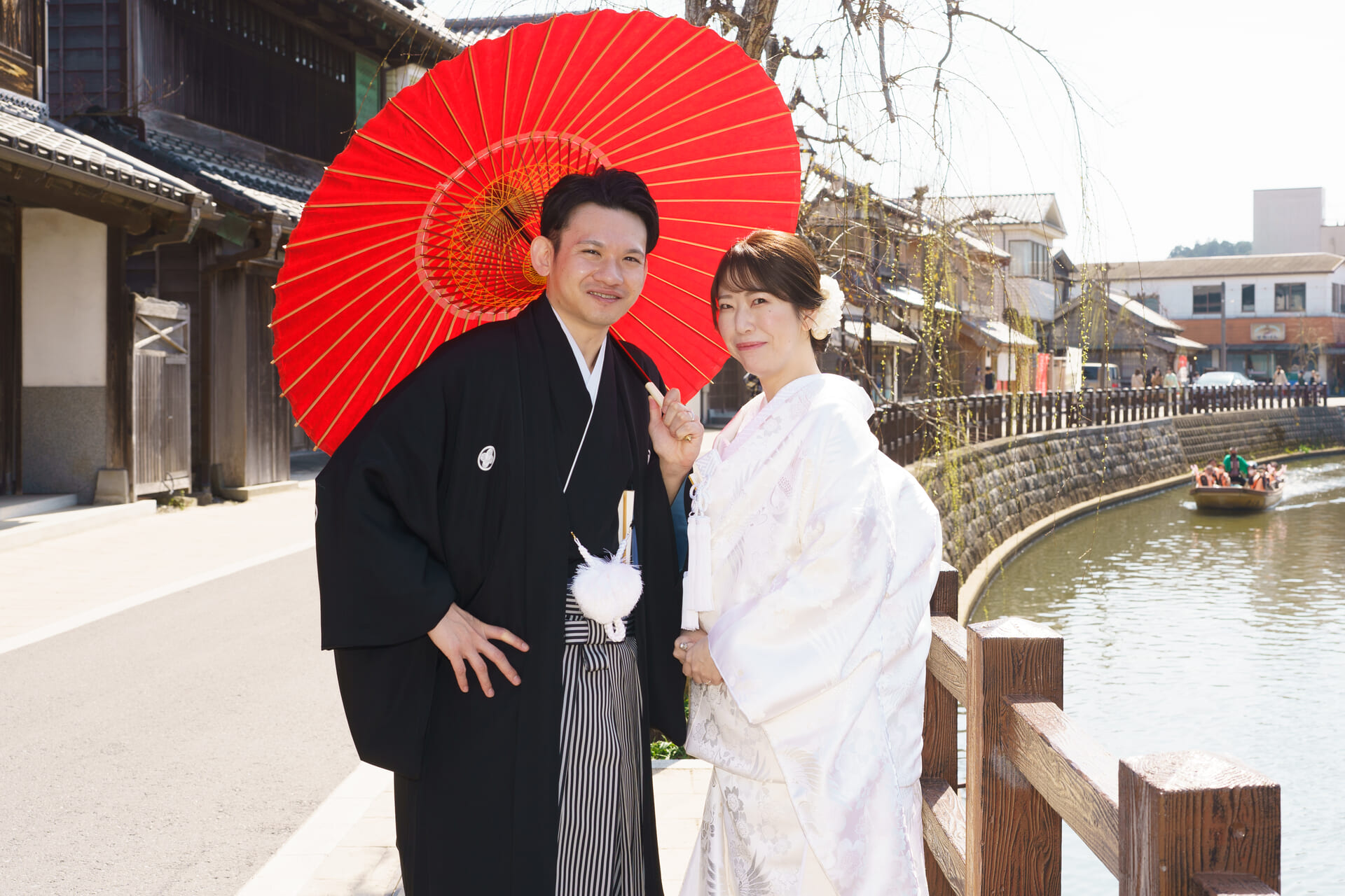 鹿島神宮で神前式を希望されていたおふたりは、この土地ならではの花嫁舟や、日本の美意識が詰まった佐原のまち並みに心惹かれたご様子でした。